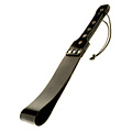 A wide leather loop forms this clever paddle, and as you bring it down on the target, you get a double hit as both sides of the loop strike home, and a satisfying sound to match - in fact, you'll immediately look like an expert with this cleverly designed paddle that delivers with very little effort! The loop paddle is made from heavy duty leather and is 6 cm wide, with an easy grip leather riveted handle and wrist strap.